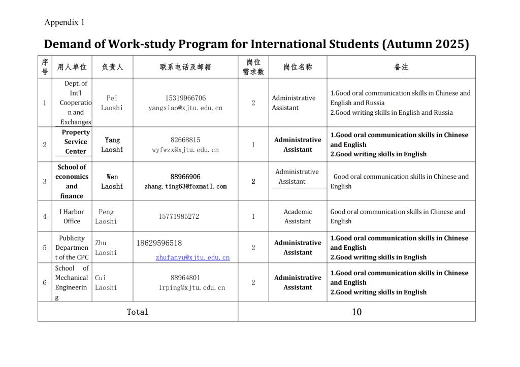 1.Demand of Work-study Program for International Students (Autumn2025)