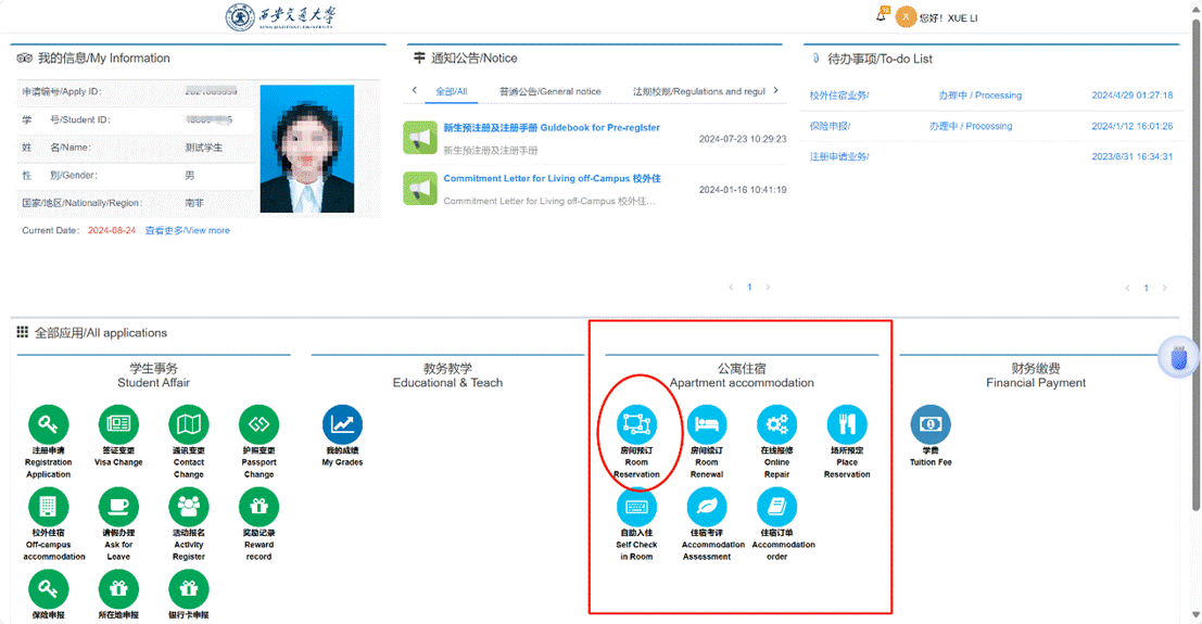 8. If you have any question about accommodation reservation, please contact:dorm_sie@xjtu.edu.cn.