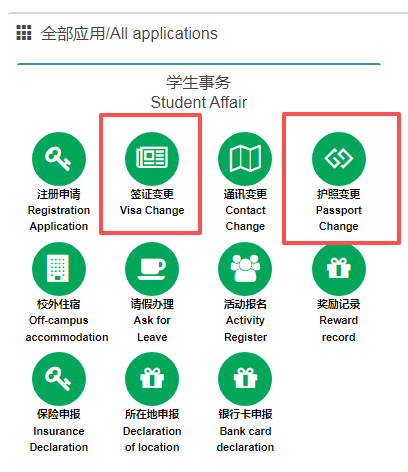 Procedure: Log in to the Xi’an Jiaotong University International Student Integrated Service Platform (http://isso.xjtu.edu.cn/admin/login). Navigate to"Passport Change" and "Visa Change"under Student Affairs to verify and update the relevant information. Detailed instructions are provided in the attached figures.