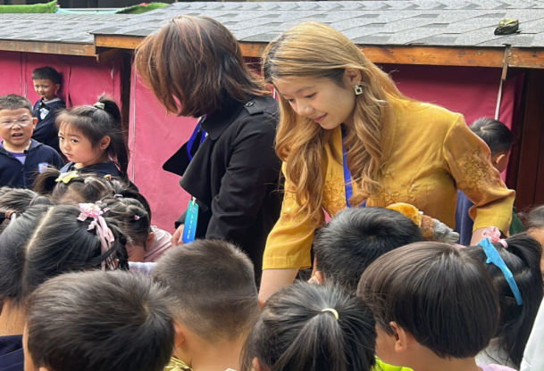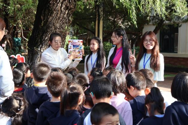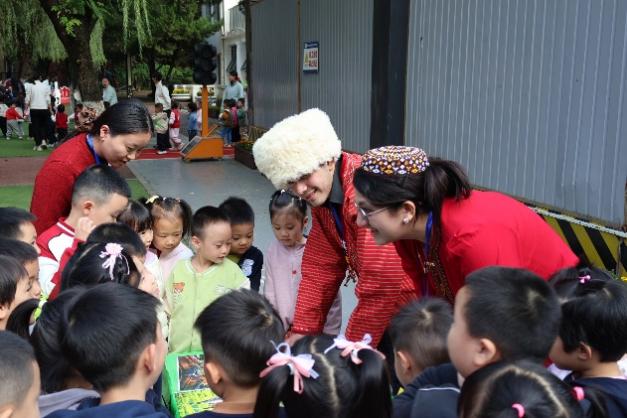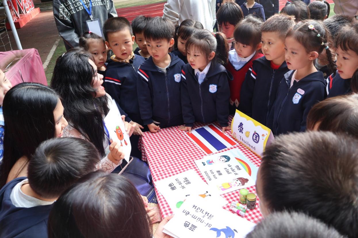 国际学生代表们热情地打招呼,用母语亲切教学“你好”。孩子们还将自己亲手制作的小礼物送出,一份份稚拙而真诚的心意,成为连接中外童心最纯真的纽带,悄然播下了友谊的种子。