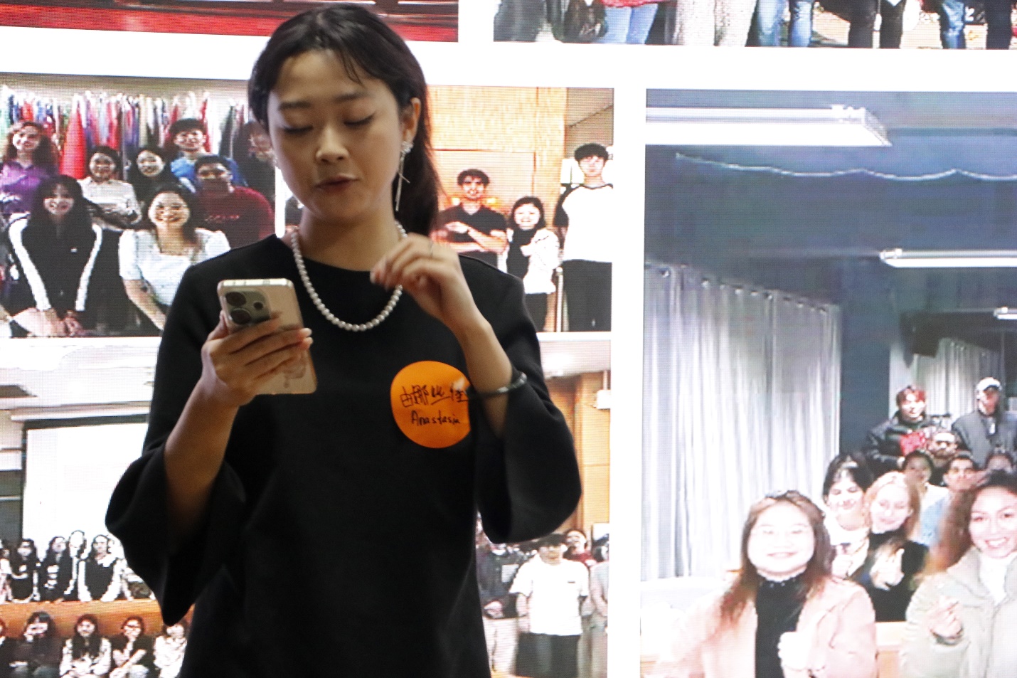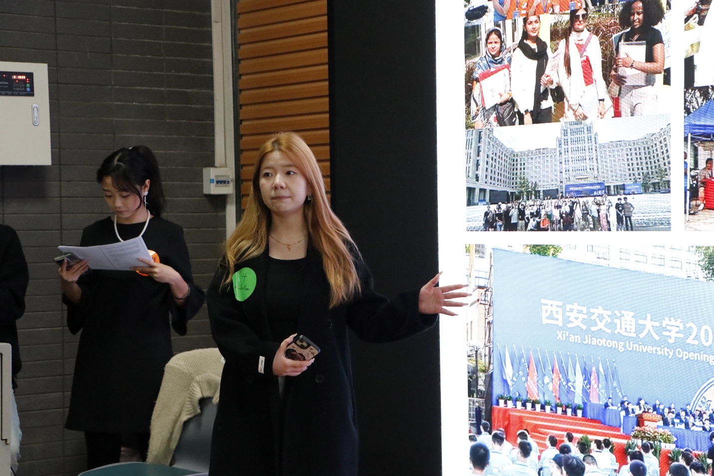 文体活动部杨惠媃(KERIN)先回顾了以往组织的国际学生文化节、文化体验等文化交流活动。她表示,文体活动部下设交小留艺术团、体育俱乐部和文化体验坊三个子部门:交小留艺术团包含舞蹈团,目前正筹建书法文化团;体育俱乐部常与中国学生联合举办球类比赛并取得佳绩;文化体验坊致力于组织中外文化交流活动,如国际学生的中国节等。