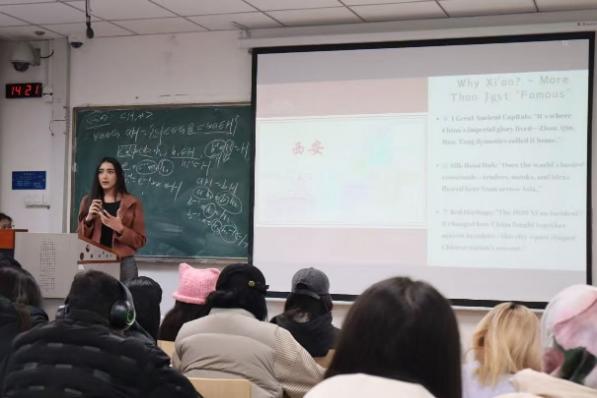 塔吉克斯坦学生MAMADRAHIMOVA HALIMA分享了走访西安事变纪念馆、大唐不夜城、回民街等地的经历。团队探索红色遗产的教育意义与古文化的现代传承,发现西安通过唐代舞蹈与现代场景融合、角色扮演等方式,让历史“活起来”,体现了文化遗产与当代生活的共生。