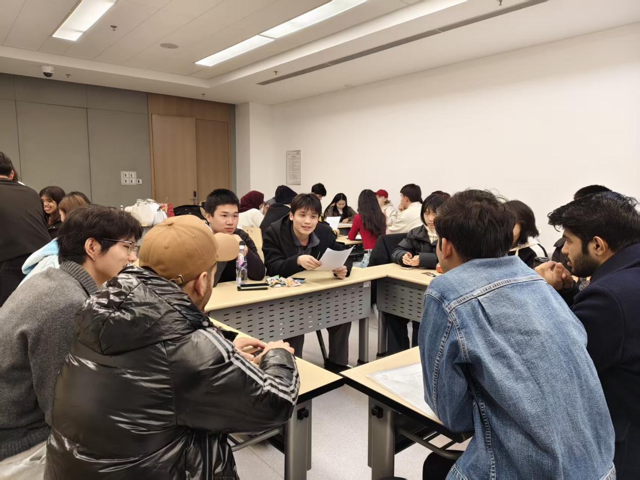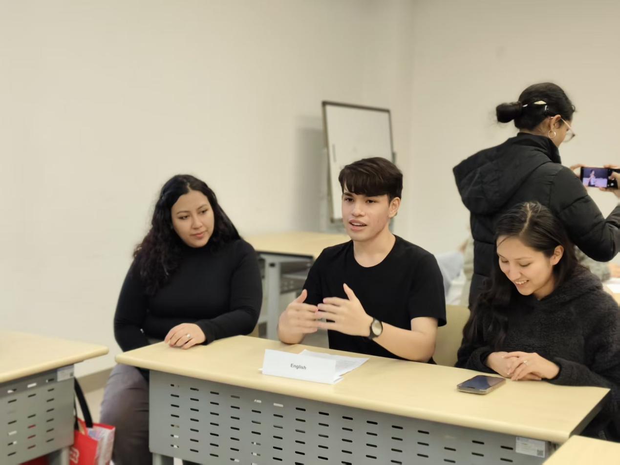 在互动交流环节,同学们踊跃参与情景对话练习,模拟问路、问候、自我介绍等真实场景,现场气氛轻松活跃。来自秘鲁的RAQUEL HUERTA同学分享道:“今天的语言角让我感到非常启发和惊喜。每位志愿者都准备得非常充分,他们不仅耐心地教我们语言,还分享了很多有趣的文化背景。我真的学到了很多新的表达方式,也很享受与来自不同国家同学交流的过程。”来自外国语学院的程文萃同学也说:“这是我首次学习马来西亚语和越南语,授课同学耐心又用心,教学方式新颖有趣。我们在轻松的氛围中学习语言、结交好友,与各国同学交流学习的体验格外特别,期待多多举办此类活动!”其他同学也纷纷表示,语言角这种形式不仅让他们接触到不同语言,还能在轻松互动中结识新朋友,收获满满。