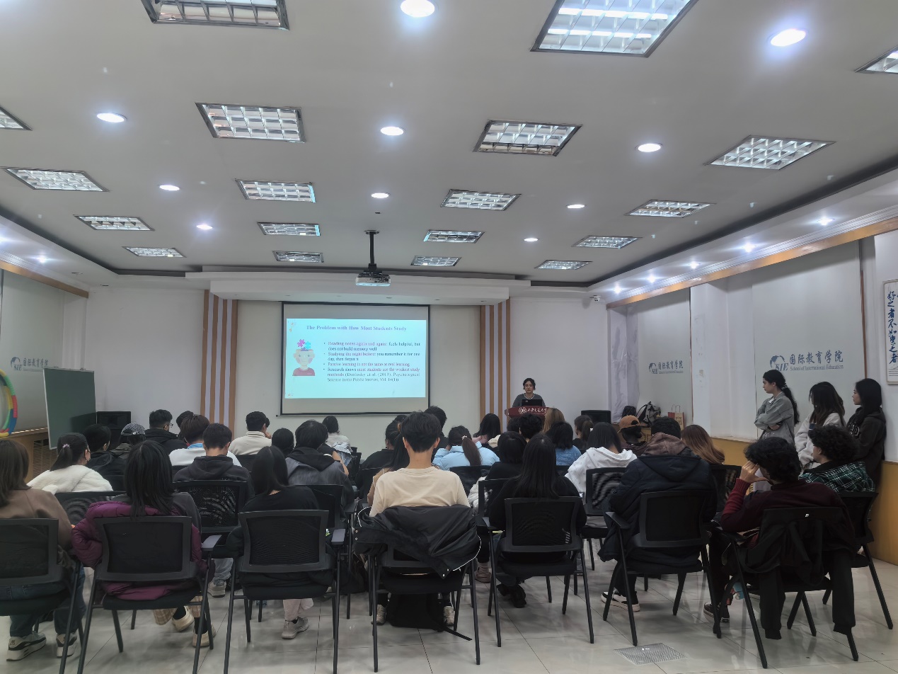 3月25日,国际教育学院推出的“筑梦”分享会—学业领航第二十一期活动在雁塔校区成功举办。为帮助国际学生掌握科学的学习方法,提升学业效能,营造良好学习氛围,学院特邀请2020级临床医学本科生Mahsa Fatahichegeni(莎莎)同学为国际学生们带来一场以如何轻松学习,科学提升记忆与成绩的实用策略为主题的分享会,吸引了30余名来自不同国家和专业的国际学生到场聆听。