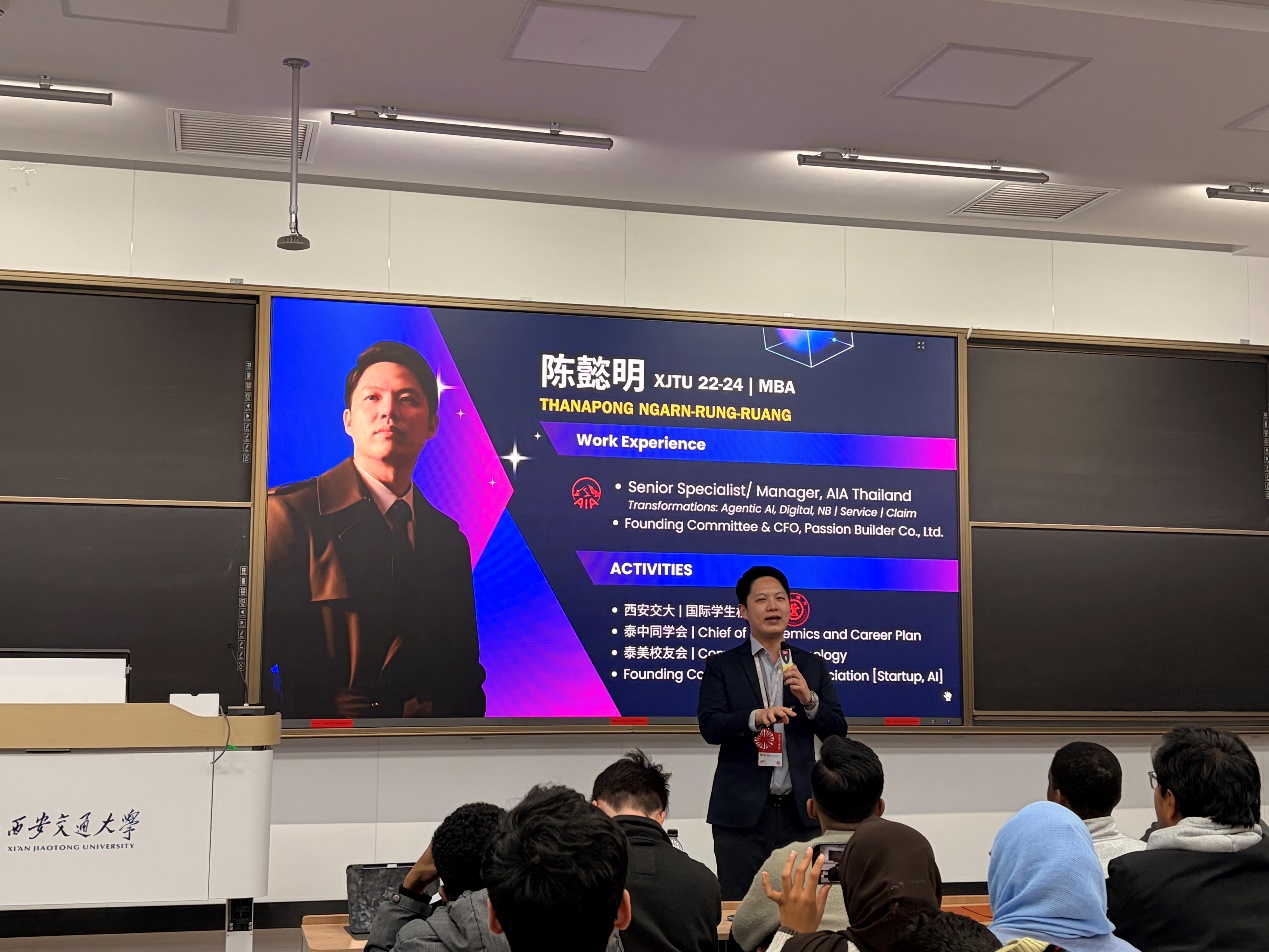 陈懿明校友来自泰国,2024年获得西安交通大学工商管理专业硕士学位,现就职于泰国友邦保险(AIA Thailand),担任高级业务经理,同时兼任泰中同学会学术与职业规划部主任。