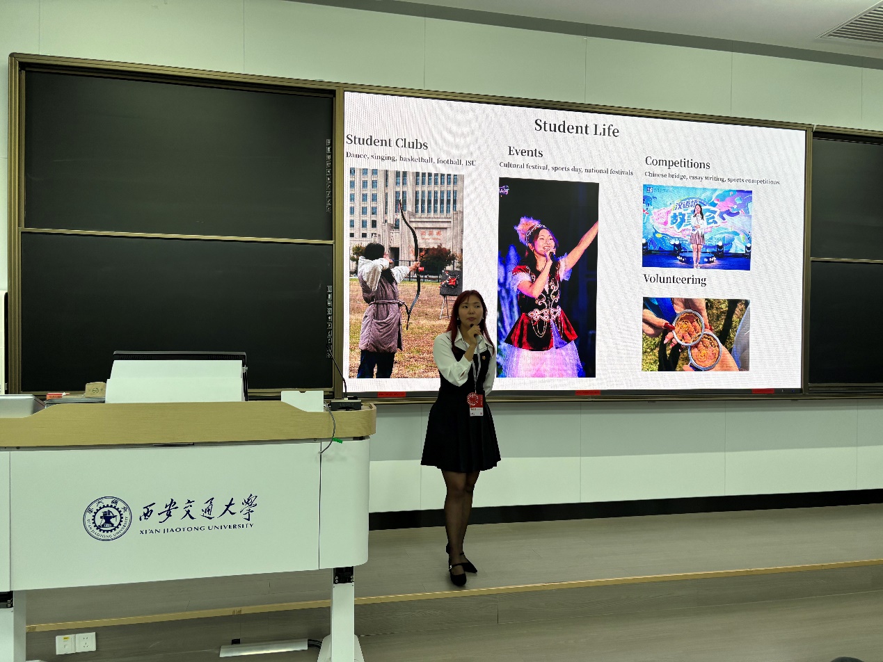 陈懿明以“Pre、During、Post”为线索,全面展示了自己在交大求学期间的丰富经历。从担任助教、参与招生面试,到组织泰中同学会、协助泰国学生返华复学,再到参加国际文化节、音乐嘉年华、中秋节庆祝活动等校园文化活动,他始终活跃在跨文化交流的第一线。他还分享了自己对学术论文写作的独到理解——“好的论文是完成的论文”,鼓励同学们注重执行力。作为西安交通大学全球传播使者,他用自己的行动诠释了国际学生在促进中外文化交流中的积极作用。