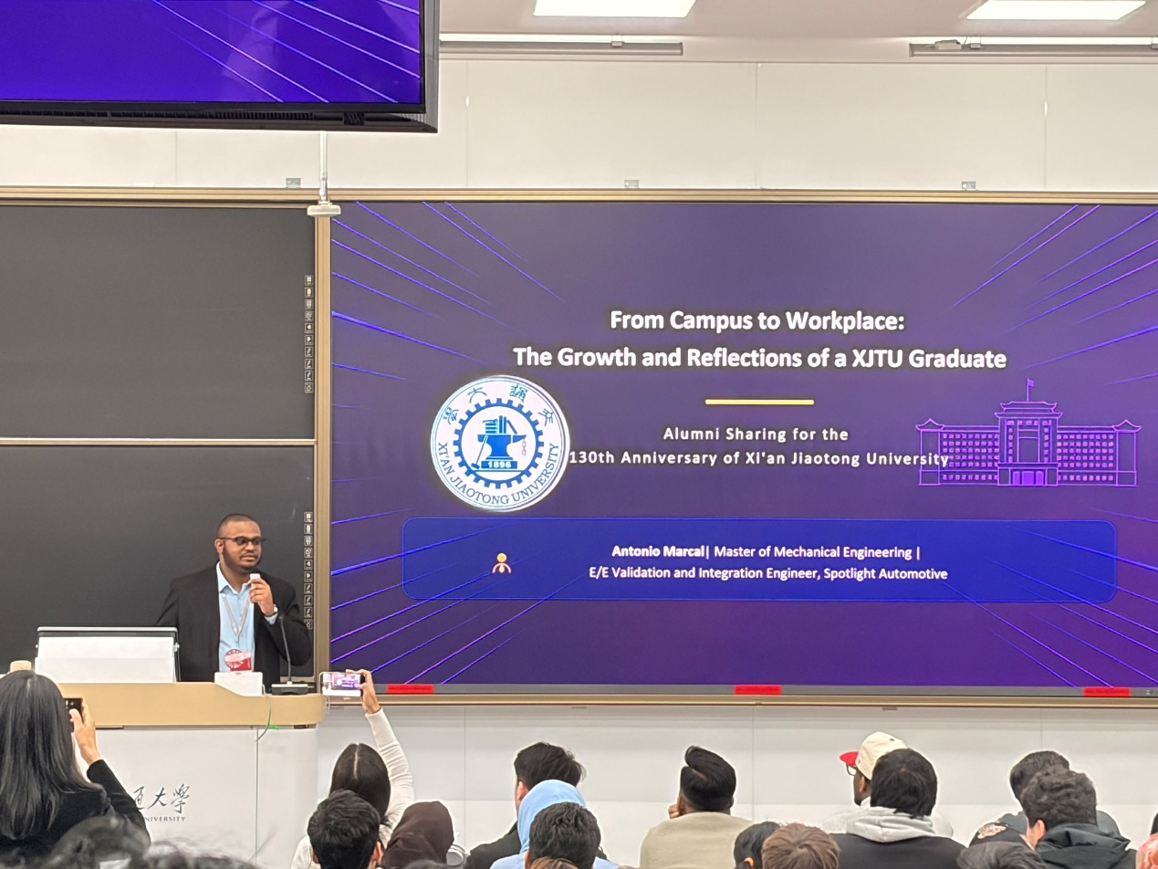 四位校友的分享内容翔实、情感真挚,赢得了在场师生的阵阵掌声。他们虽然来自不同国家、从事不同行业,但都深情回顾了在西安交通大学求学的美好时光,一致认为母校严谨的学风、开放包容的国际化氛围以及师长们的悉心指导,为他们日后的职业发展奠定了坚实基础。
