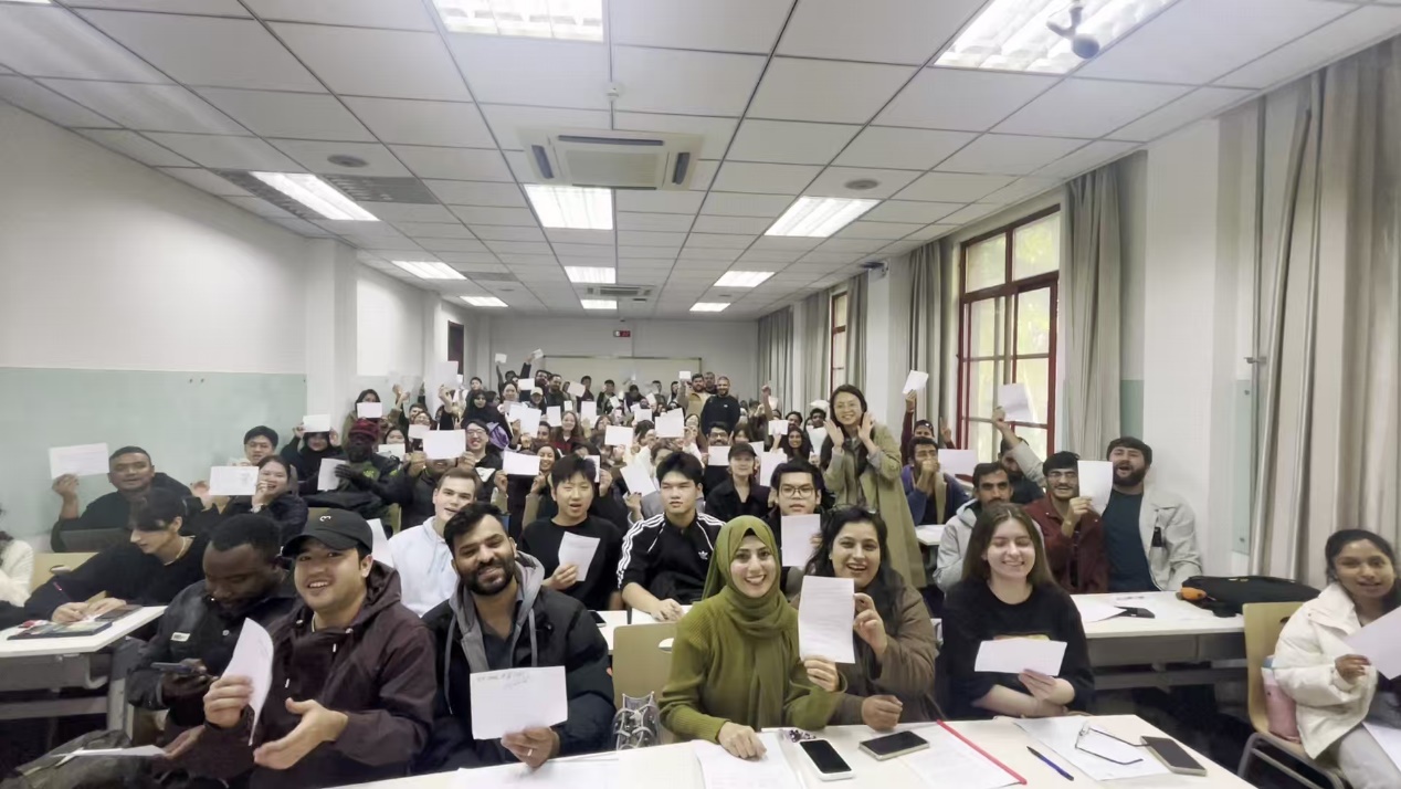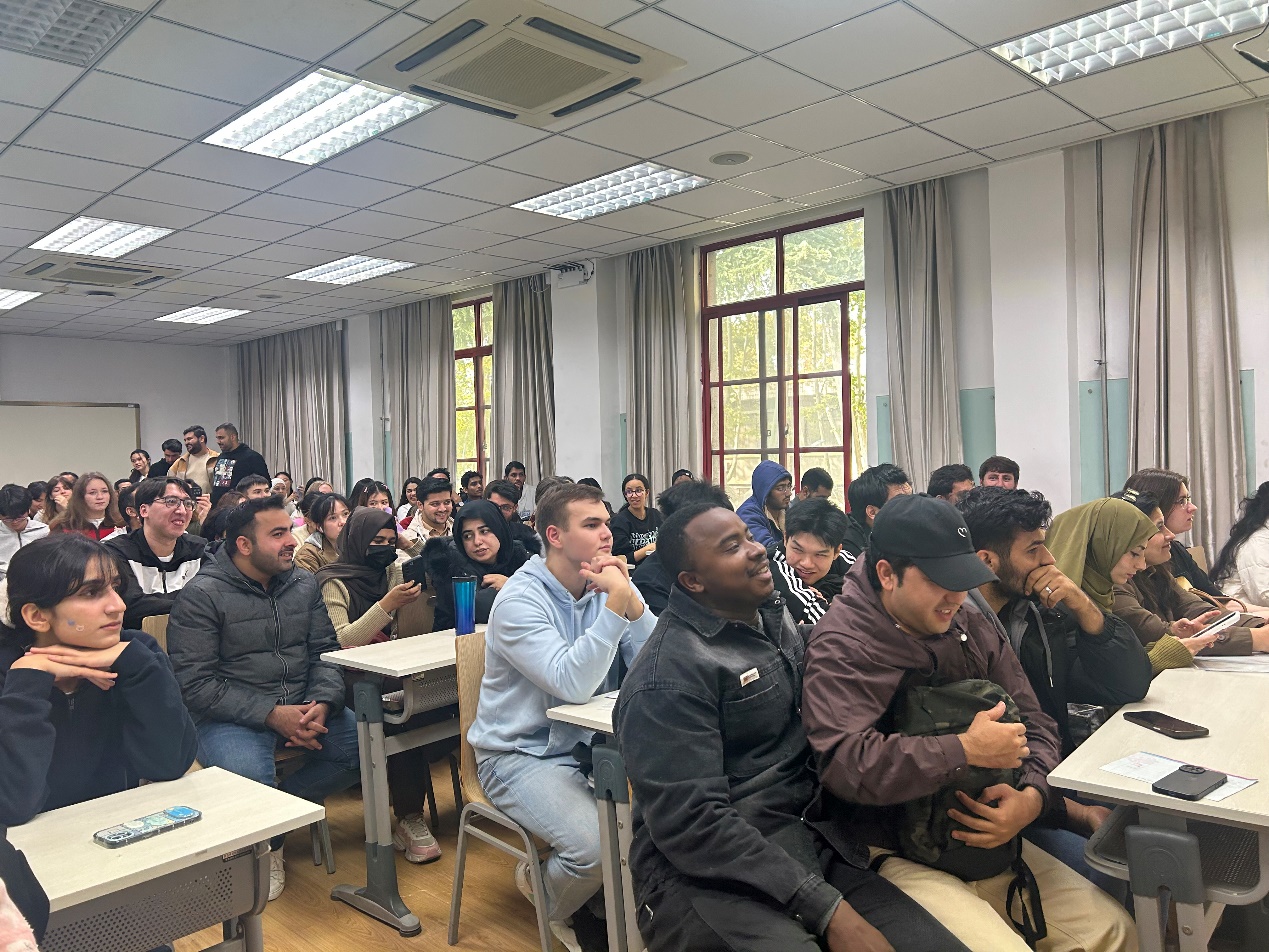 为增强国际学生对这一节日的理解,2025年10月28日下午,国际教育学院特邀请汉语教师刘莹为国际学生举办“情暖金秋,爱在重阳”为主题的文化讲座,共有来自印度、摩洛哥、伊朗、伊拉克、尼泊尔、柬埔寨、南非、俄罗斯、厄瓜多尔、墨西哥、巴基斯坦哈萨克斯坦等二十余个国家的 130 余名中外学生积极参加。