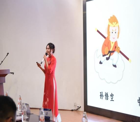 报告厅内气氛热烈座无虚席。赛事邀请教务处贺进副处长、医学部孟列素副处长、外国语学院彭风玲主任、国际教育学院田美副院长担任评委,国际教育学院温广瑞院长也莅临赛场。来自越南的陶明玉率先登台,以《我为什么不再说“不好意思,我是外国人”》开启整场演讲。她分享了初到交大时依赖“外国人”身份逃避交流,到后来主动突破心理“围墙”,在课堂上勇敢发言,“错误不是笑话,而是通向进步的阶梯”的感悟,引发在场学生的强烈共鸣。越南学生阮文平以《一首歌里的西安“味儿”》为题,现场哼唱“西安人的城墙下是西安人的火车,西安人不管到哪都不能不吃泡馍”,熟悉的旋律瞬间拉近与观众的距离。在演讲尾声还带来越南杯舞表演。越南传统舞蹈的柔美与西安文化的豪迈形成巧妙呼应,赢得台下掌声不断。农氏嫣同学以《一座桥,一束光:我的国际中文教育之旅》为题,讲述了自己作为线上中文老师的动人经历。学生作业里的“学中文,就像在黑夜里看到一束光。”,让她深刻意识到国际中文教育的意义,“我教授的每一个汉字,讲述的每一个中国故事,都在为这些孩子搭建一座通往更广阔世界的‘桥’。’”她选择来到西安交大攻读国际中文硕士,正是希望将教学一线的感动与困惑,淬炼成更系统的理论与方法,让“桥”更坚固、“光” 照得更远,这番真挚讲述赢得全场久久不息的掌声。津巴布韦的孙天佑以名字中的“天佑” 为引,分享初到中国时因踢倒行李箱脱口而出 “对不起” 的趣事,从对 “中国功夫” 的刻板印象,到在西安古城墙上触摸“唐朝的风,明朝的雨” 的震撼,展现了汉语学习与文化认知的双重成长。